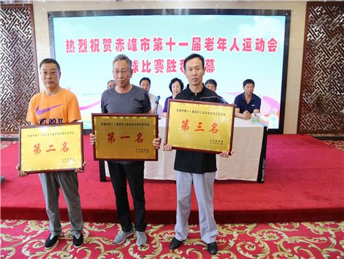 在全体运动员、裁判员、工作人员的共同努力下,经过两天的比赛,最终克旗代表团荣获第一名,红山区、宁城县分别荣获第二名、第三名,市老年体协和旗老年体协领导为获奖集体进行了颁奖。
