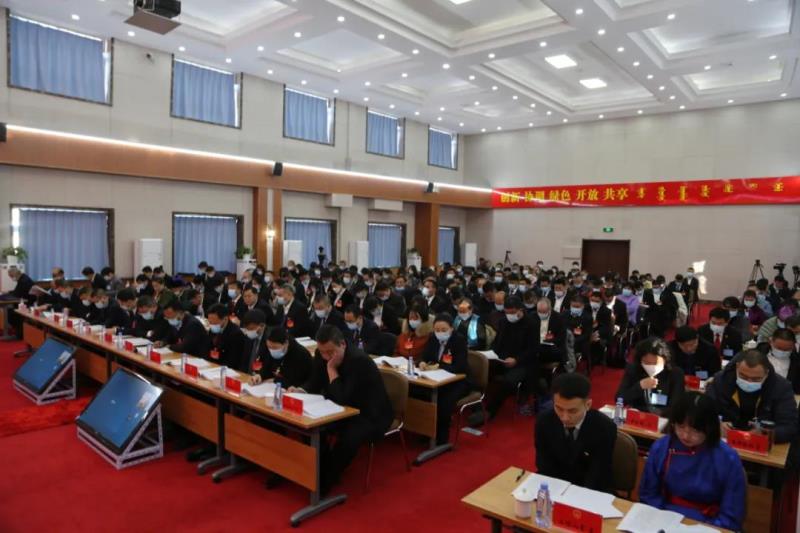 根据会议议程,旗人大常委会主任哈斯陶格陶代表旗第十七届人民代表大会常务委员会向大会报告工作。报告主要分为四年来的工作回顾、今后五年的工作建议、2022年的工作安排三个部分。