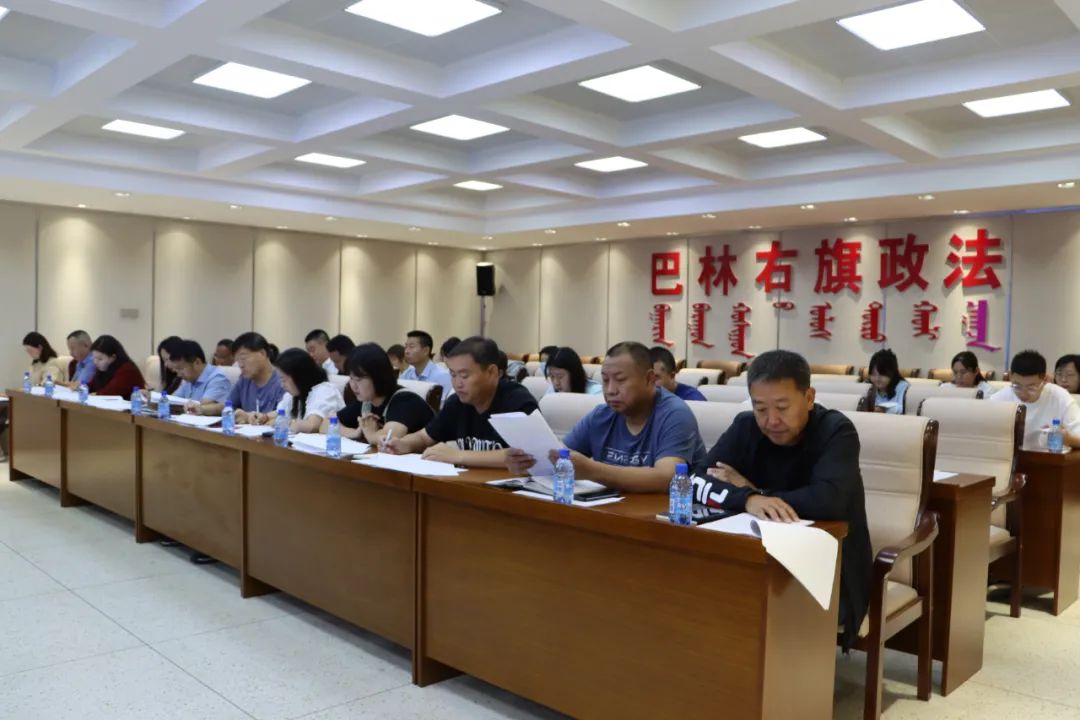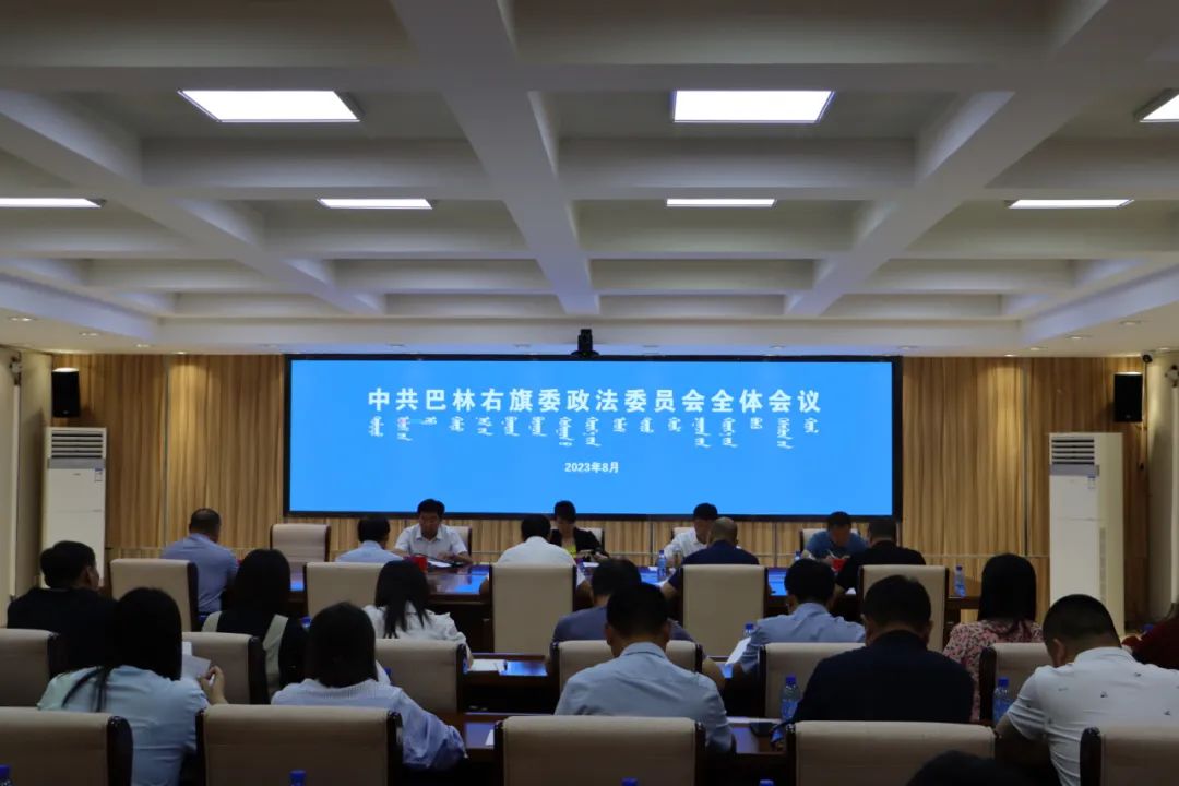 8月22日,中共巴林右旗委政法委员会全体会议召开。旗委副书记、政法委书记李向云主持会议并讲话;旗政府副旗长、公安局局长郭明锐,旗人民法院院长周磊,旗人民检察院检察长刘向前出席会议;旗公安局、法院、检察院、司法局、国安局领导班子成员,旗委政法委机关全体人员,各苏木镇街道政法委员参加会议。