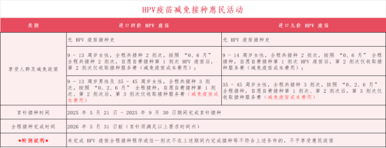 2025年5月21日-9月30日期间接种第1剂,但未在2026年5月31日前完成全程接种的,需个人自行承担剩余剂次疫苗原价费用,不再享受本次活动的减免政策。免费政策仅限疫苗费用,每针需自付20元接种服务费!所需证件:身份证、学籍证明(学生)。