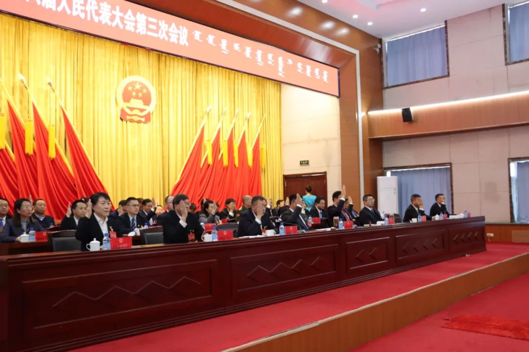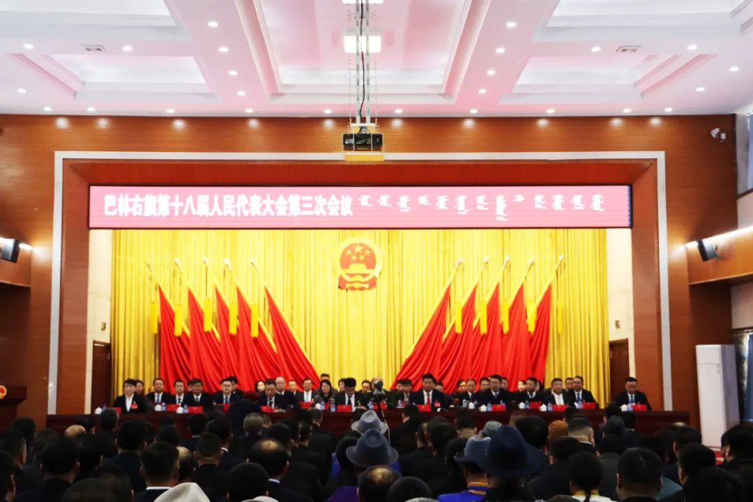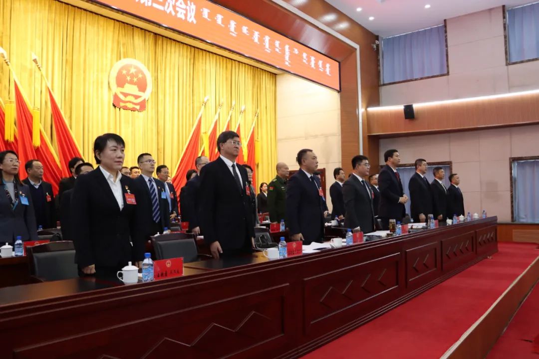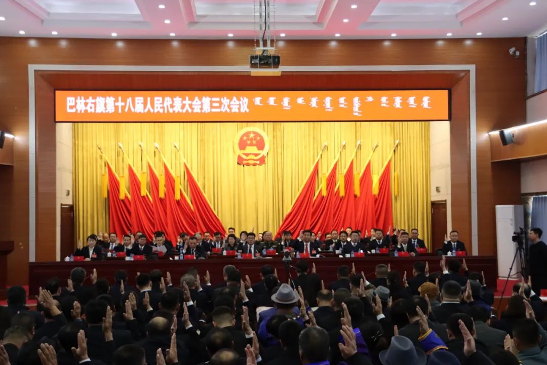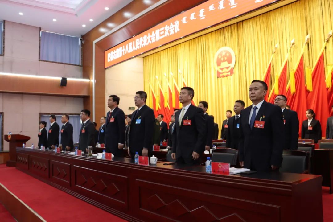 巴林右旗第十八届人民代表大会第三次会议圆满完成会议各项议程,在雄壮的国歌声中胜利闭幕。