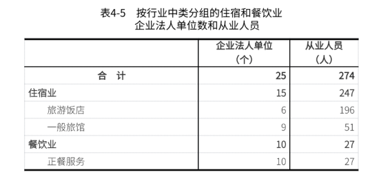2023年末,全旗共有住宿和餐饮业企业法人单位25个,全部为内资企业,比2018年末增长4.2%;从业人员274人,比2018年末下降33.5%。
