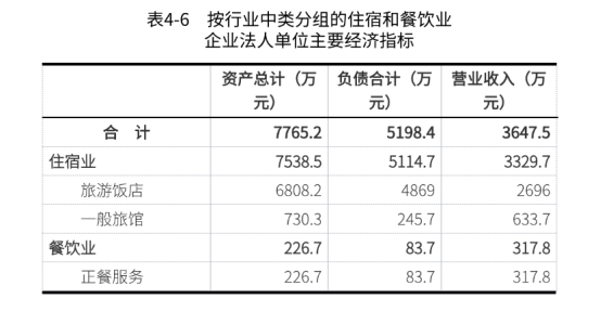 2023年末,住宿和餐饮业企业法人单位资产总计7765.2万元,比2018年末下降31.7%;负债合计5198.4万元,比2018年末增长46.1%。