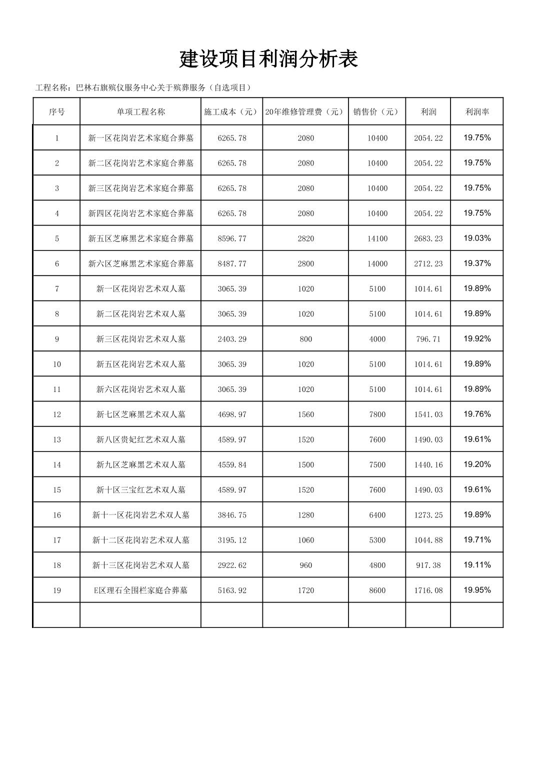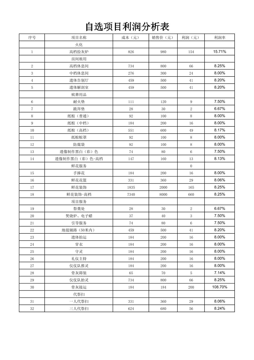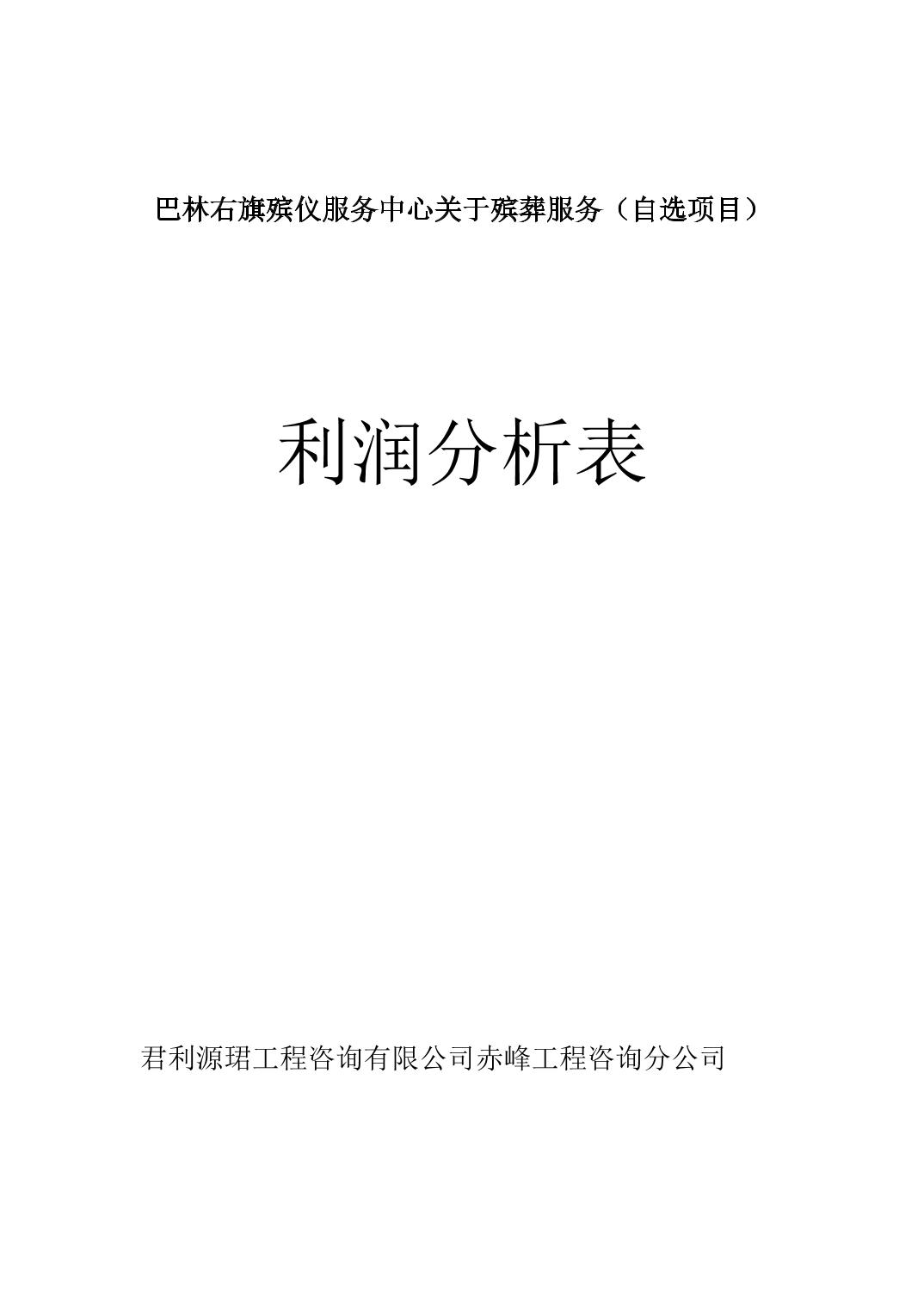 巴林右旗殡仪服务中心关于殡葬服务(自选项目)-利润分析表