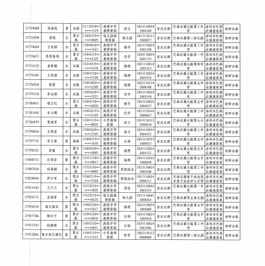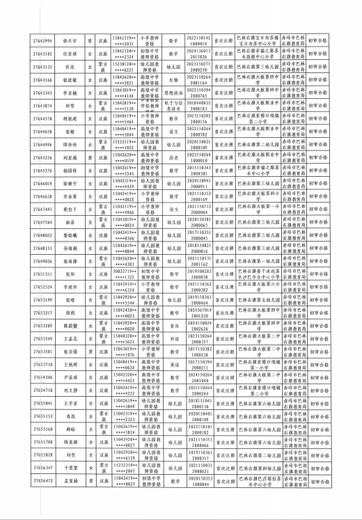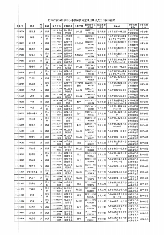 根据《教师法》《教师资格条例》《中小学教师资格定期注册暂行办法》《内蒙古自治区中小学教师资格定期注册实施细则(试行)》《关于做好自治区中小学教师资格考试和定期注册改革试点工作的通知》(内教教师函〔2021〕56号)要求,自治区实行国家中小学教师资格定期注册制度改革。按照《赤峰市2025年中小学教师资格定期注册试点工作公告》要求,对全旗公办普通中小学校、中等职业学校、幼儿园在编在岗教师进行了教师资格注册工作。根据上级要求从2025年11月6日-11月20日网上报名,11月25日完成现场确认,12月2日初审结束。初审结果情况现予以公示如下(见附件)。