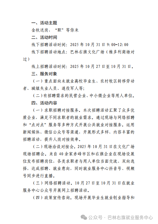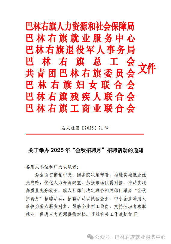 关于举办2025年“金秋招聘月”招聘活动的通知