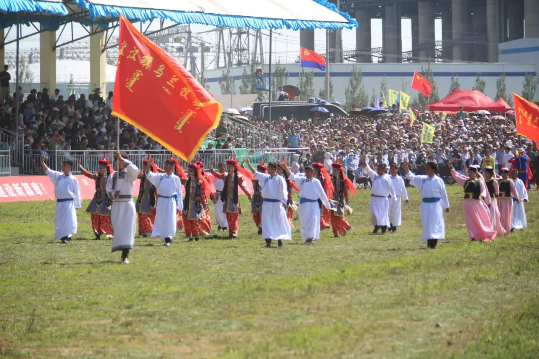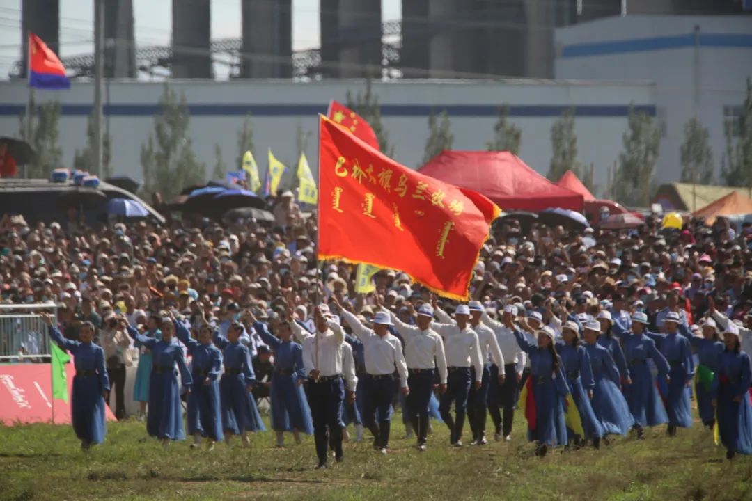 随后,那达慕和“幸福巴林”主题方阵、非遗传承人方阵、“男儿三艺”方阵、乡村振兴产业带头人方阵、民族服饰方阵、网络达人与旅行者方阵、“五大任务”彩车、“模范自治区”彩车、蒙古马精神方阵依次精神抖擞步入会场。