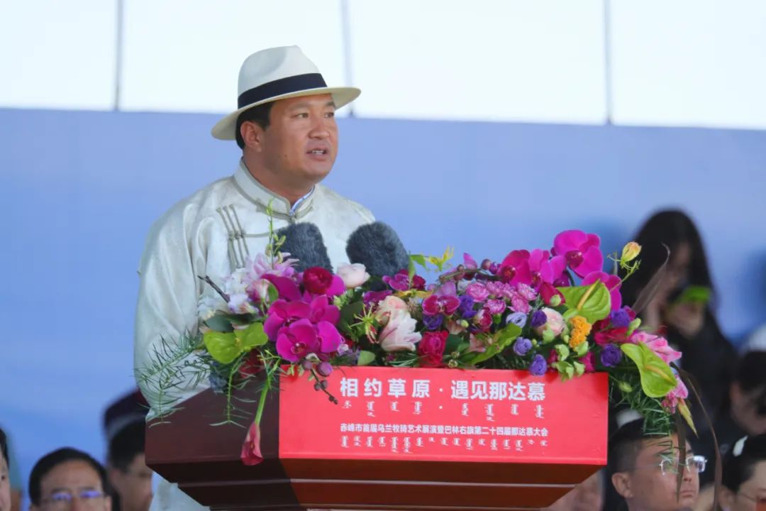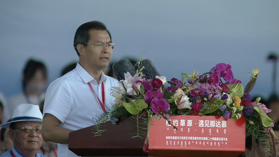 赤峰市委常委、市政府副市长张继康宣布赤峰市首届乌兰牧骑艺术展演暨巴林右旗第二十四届那达慕大会开幕。